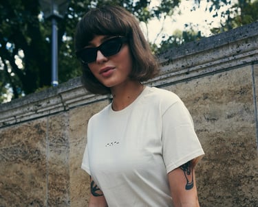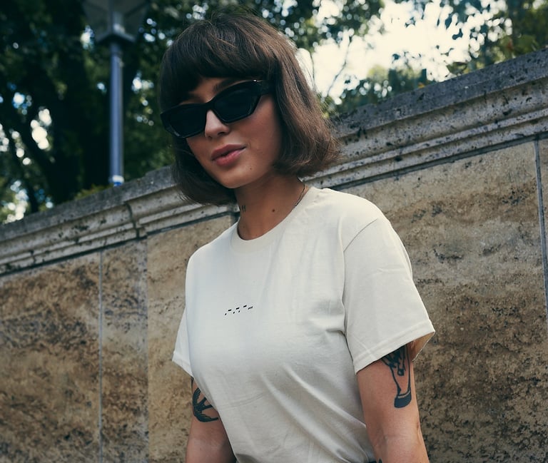 FIT TRUE TO SIZE, THE WHITE TEE IS A NON-WASHED GARMENT, SO IT ISN'T PURE WHITE.